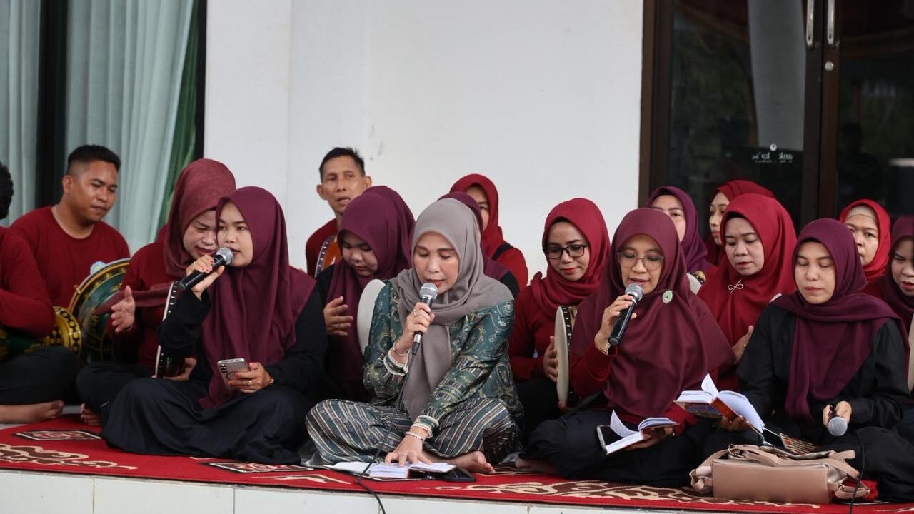 Usai berolahraga, suasana berubah menjadi khidmat saat seluruh peserta melantunkan sholawat bersama RND Habsyi Medina Al Khumairo. Pasalnya, kehadiran Hj. Sri Huriyati Hadi di barisan depan membuat suasana semakin memukau dan religius.