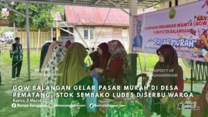 BANUASANGGAM.COM, LAMPIHONG – Dinas Perindustrian dan Perdagangan (Disperindag) Kabupaten Balangan kembali menggelar pasar murah di Desa Batu Merah, Kecamatan Lampihong, Selasa (10/3/2026). Oleh karena itu, warga setempat menyambut antusias kesempatan emas ini guna mendapatkan bahan pokok dengan harga terjangkau selama Ramadan.